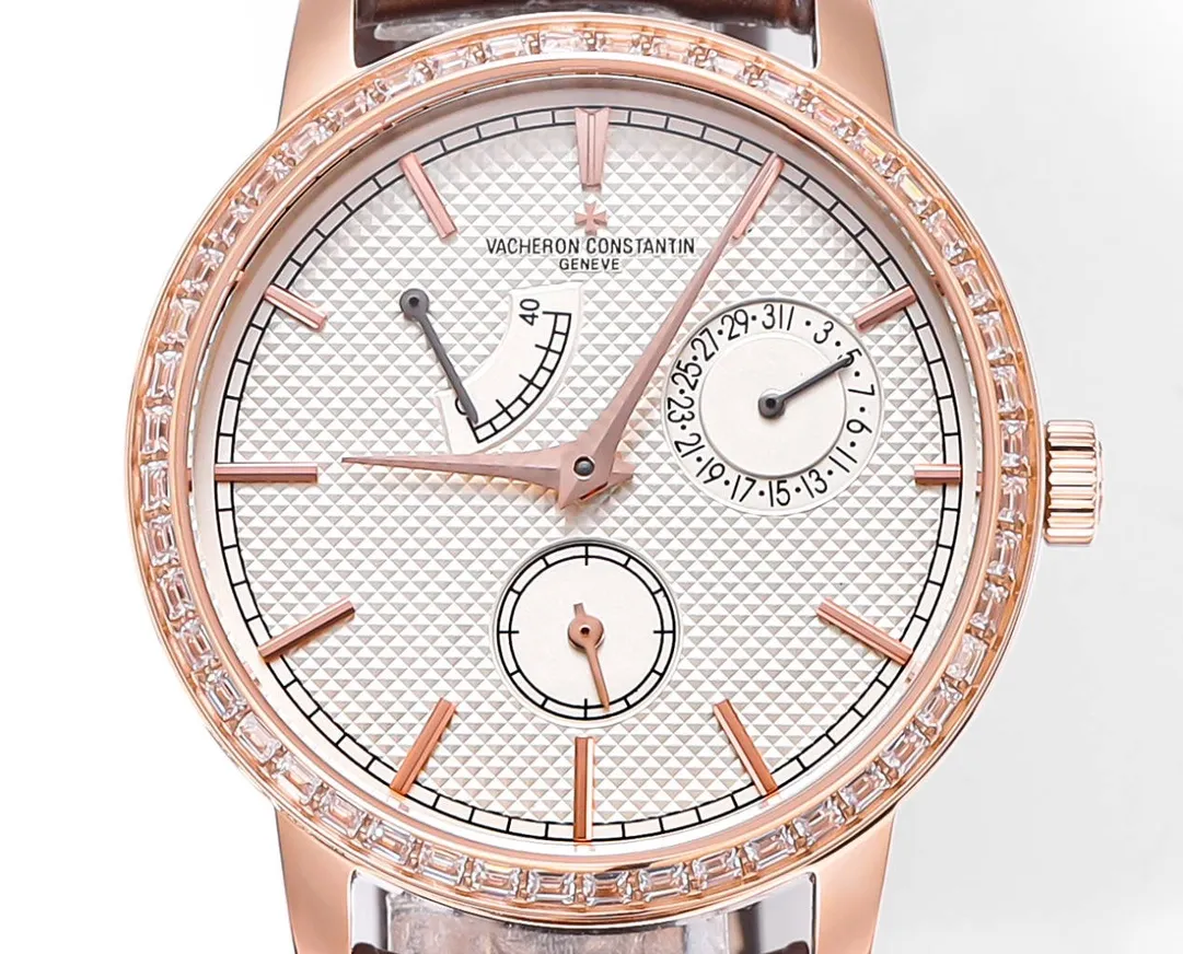 - Multifunctional Dial. Includes date at 3 O’Clock, running seconds and power reserve. Rose Gold Case Rose gold adds an extra touch of luxury to the watch. Brown Leather Strap Classic leather brown for an elegant appearance. The automatic mechanical movement of this watch ensures accuracy and reliability. Vacheron Constantin’s Traditionnelle mechanical watches, 83520/000R-909 combines luxury and functionality. This multi-function watch is crafted with a rose-gold dial and a brown leather strap.